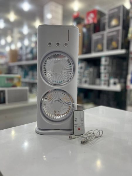 پنکه دو طبقه مه پاش شارژی ریموت دار چرخشی رومیزی